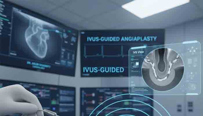 IVUS-Guided Angioplasty is a modern, image-based diagnostic and treatment technique that enhances the accuracy and safety of coronary interventions. IVUS, or Intravascular Ultrasound, provides detailed, real-time images of the inside of coronary arteries — offering far more information than a conventional angiogram, which only shows a shadow or outline of the artery.